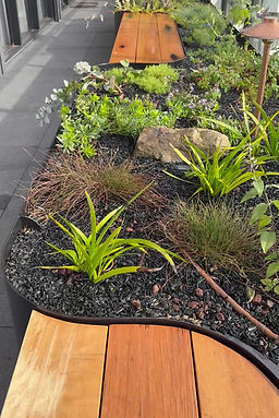 All the materials Lach & his team installed (steel planters, timber benches, lights, water feature, irrigation) are top quality and enhance our outdoor space both from the inside looking out, and, when summer comes, sitting amongst the plantings.